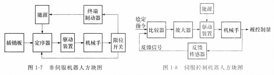 按控制方式進(jìn)行分類,機(jī)器人分為二種:非伺