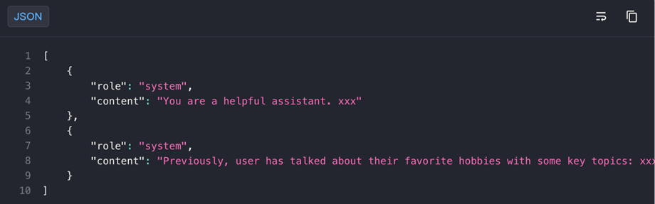 對話式 AI 引擎整體短期記憶會以 JSON 的形式存儲,遵循 OpenAI Chat