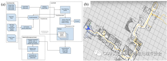 Cartographer[1]是google在2016年開源[2]的跨平臺(tái)和傳感器配置,并提供2D和3D實(shí)時(shí)同步定位和建圖的SLAM系統(tǒng),主要通過閉環(huán)檢測來消除構(gòu)圖過程中產(chǎn)生的累積誤差,以達(dá)到融合多傳感器數(shù)據(jù)的局部submap創(chuàng)建和用于閉環(huán)檢測的scan match策略的實(shí)現(xiàn)。主要包括cartographer和Cartographer_ros兩部分,其中cartographer為底層實(shí)現(xiàn),主要負(fù)責(zé)處理來自Laser、IMU、Odemetry的數(shù)據(jù)并基于這些數(shù)據(jù)進(jìn)行地圖的構(gòu)建。cartographer_ros是基于cartographer的上層應(yīng)用,主要負(fù)責(zé)從ros的通信機(jī)制獲取傳感器的數(shù)據(jù)并將它們轉(zhuǎn)換成cartographer中定義的格式傳遞給cartographer處理,與此同時(shí)也將cartographer的處理結(jié)果用于發(fā)布、顯示或保存。